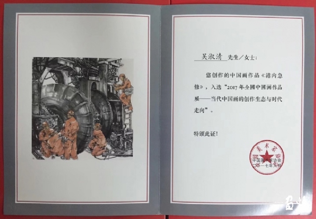 我校吴淑清老师作品《港内急修》入选国展“海丝情 中国梦”全国中国画作品展
