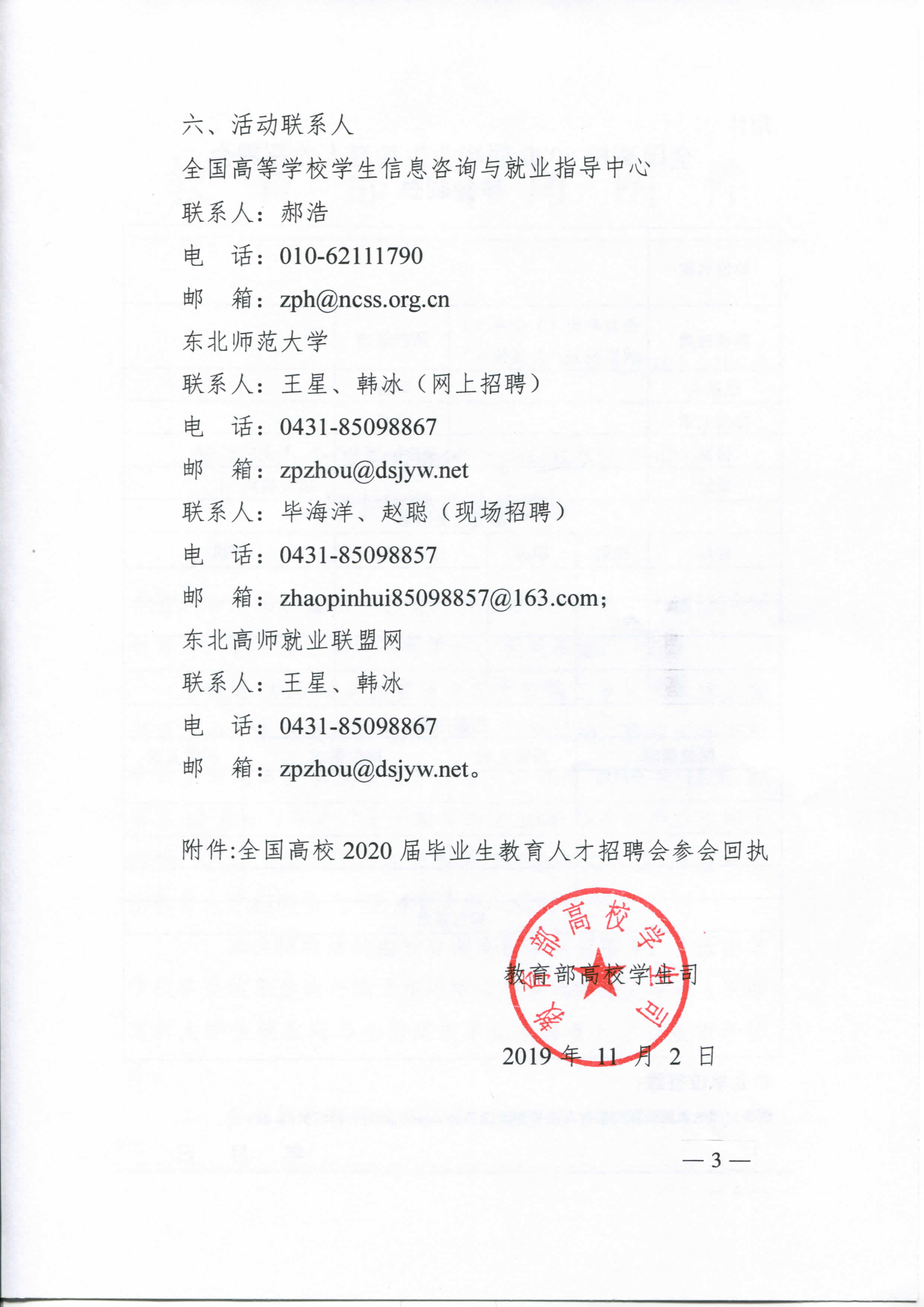 关于举办全国教育系统2020届高校毕业生网上招聘活动的通知