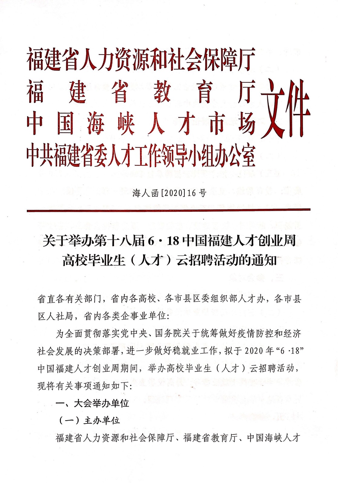 第十八届6.18中国福建人才创业周高校毕业生(人才)云招聘活动
