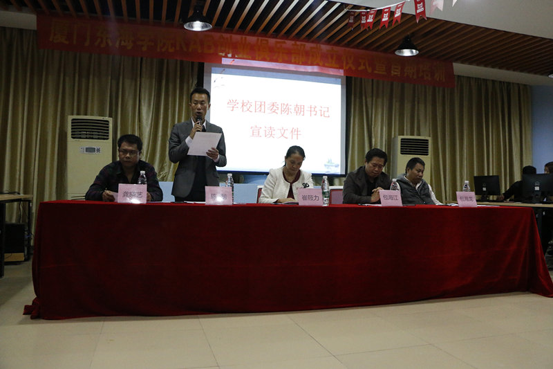 12月13日晚,由校团委、学生处联合举办的校KAB创业俱乐部成立仪式暨首期培训在教学楼9楼大学生创业孵化基地召开。学校校长助理崔筱力、学生处处长包海江、团委书记陈朝、安全保卫处处长助理包海龙、就业指导中心负责人龚晓艺及团学口创业导师出席本次活动。校级四大学生组织、分院团总支负责人以及首届KAB俱乐部的成员共100余人到场。