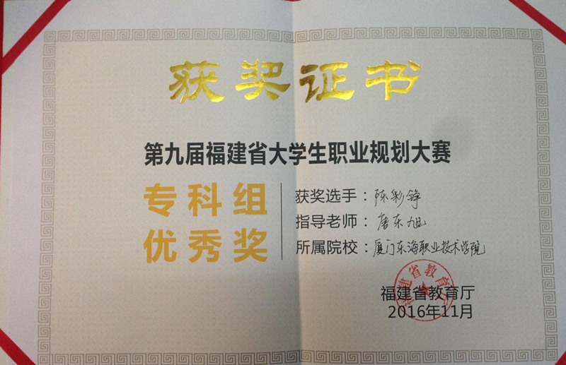 11月25日,由福建省教育厅主办,福建江夏学院承办,中国海峡人才市场人才服务中心协办的第九届福建省大学生职业生涯规划大赛在江夏学院落下帷幕。我校信息工程学院2015级电子商务陈彩铮同学荣获专科组优秀奖。