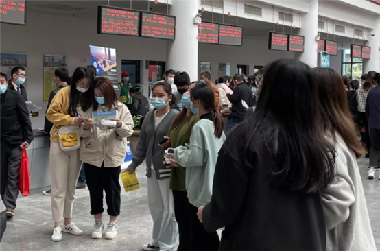 抵达同安区人力资源市场后,汤建发老师带领同学们参观了招聘会现场,并介绍招聘会结构及企业招聘流程等,鼓励学生加强了解社会岗位需求,积极与企业面试官交流。