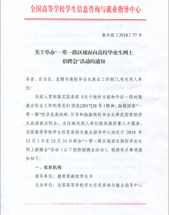 关于举办“一带一路区域面向高校毕业生网上招聘会”活动的通知