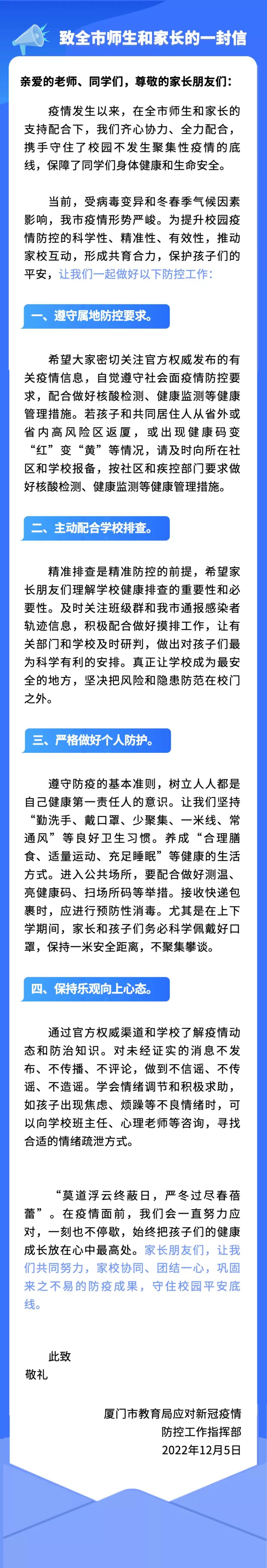 3. 厦门市教育局刚刚发布!致全市师生和家长的一封信