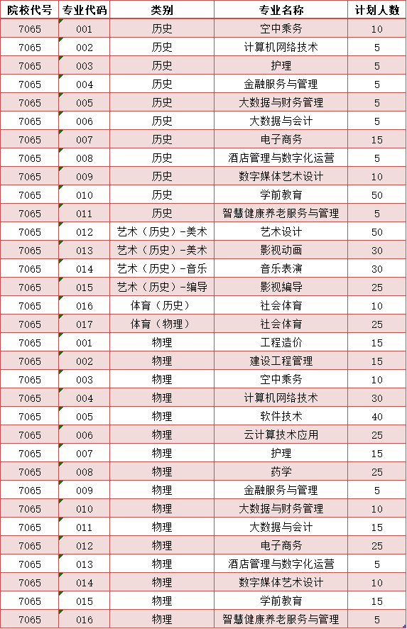 2021年福建省招生计划表