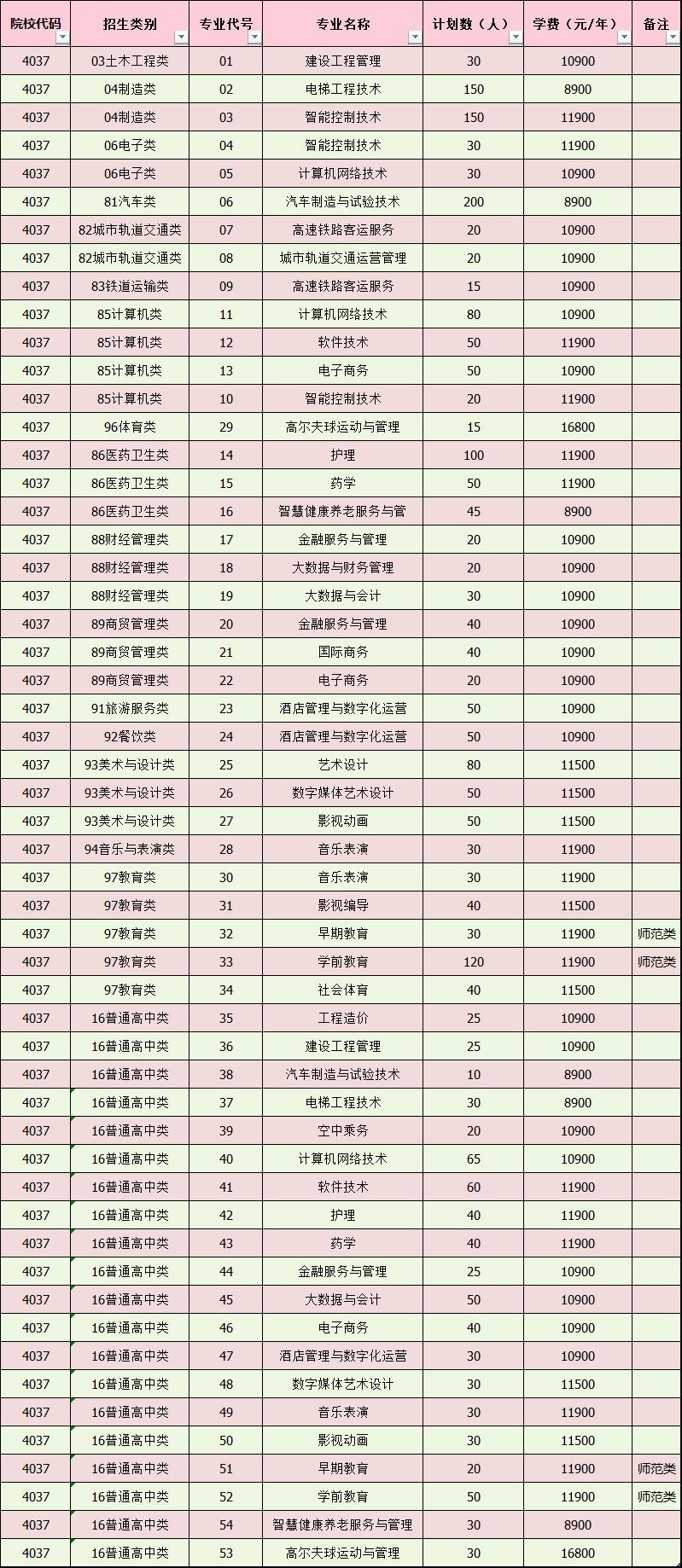 2024分类招生计划表(含学费)