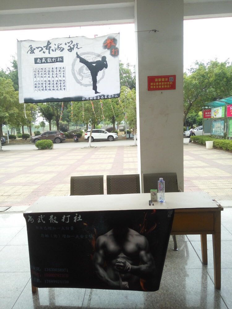 成立于2010年。本社团以‘弘扬中华武德,传承武术精髓’为理念,以‘热爱祖国、弘扬散打、勤练武术、匡扶正义’为宗旨,发扬散打精神,传承散打精髓。如果您想在社会上找到自己应有的自信,如果您想保护自己想要保护的人,那么散打社团是个绝对不错的选择。2017让我们一起“打”出一个新的高度!