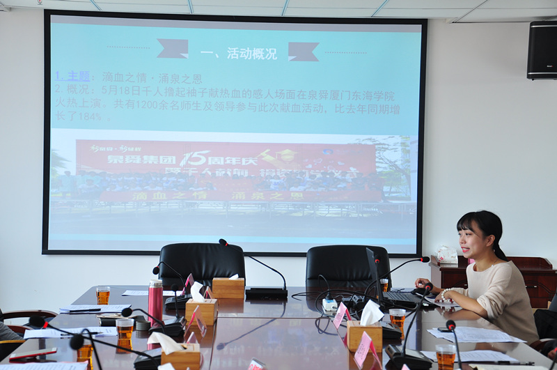 同期我校王蓓老师受邀参加厦门市高校无偿献血工作研讨培训班,并与全厦高校教师一起分享我校无偿献血工作经验,并提出“与集团周年庆相结合的千人献血活动,是泉舜集团取之于社会、回馈社会的理念所在,也是最好的生日礼物。同时集团对学校连续九年开展的无偿献血活动给予高度的肯定和支持,也是我们不断奉献爱心的动力!”