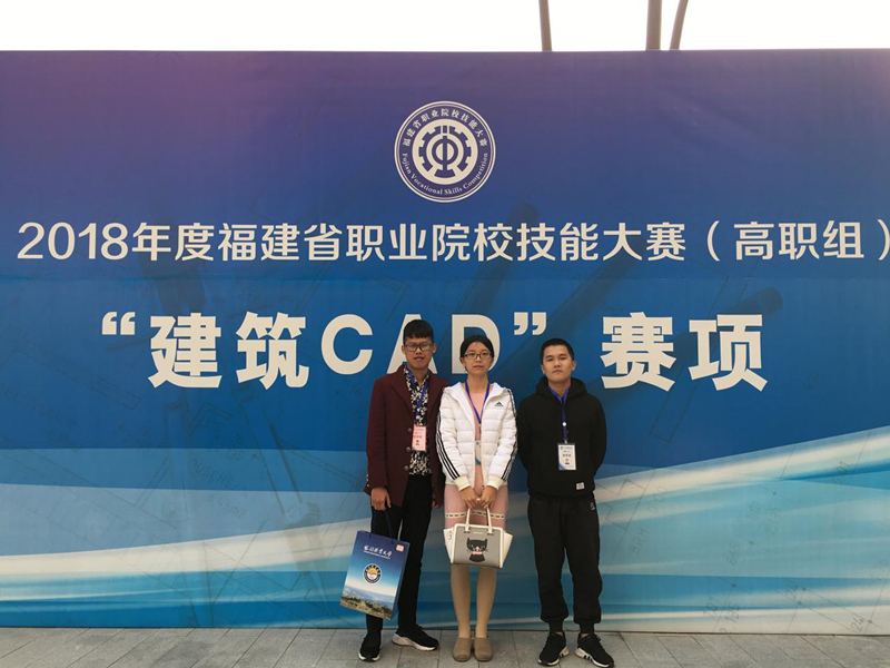2018年度福建省职业院校技能大赛(高职组)“建筑CAD”赛项于12月8-9日在黎明职业大学举行。由我校高妙苗和王蕾虹老师指导,徐坤宏以全省第40名的成绩荣获该赛项个人三等奖的佳绩。刘阳凯以全省第54名的成绩荣获该赛项个人优秀奖的佳绩。