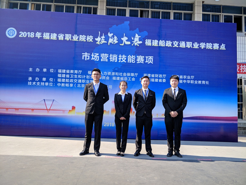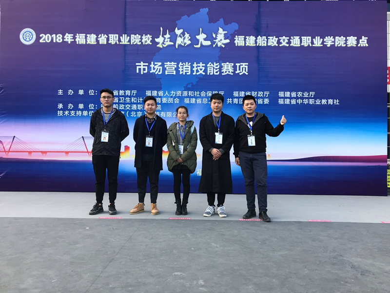 2018年福建省职业院校技能竞赛(高职组)市场营销赛项于2017年12月23-24日在福建船政交通职业学院举行,共有33支代表队参加本次比赛。由我校潘方华老师、雷丽娜老师指导,王彦昀、吴开鑫、谢玄龙、徐榕皓4位同学组成的代表队荣获该赛项第五名、二等奖的好成绩。