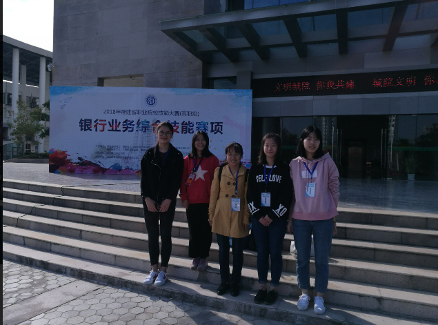 12月2日,我校由侯传娟老师指导,邱秀娟、柯凌静、柯少婷、王欣静4位同学组成的代表队参加2018福建省职业院校技能大赛(高职组)银行业务综合技能赛项,并获得第8名、三等奖的佳绩。