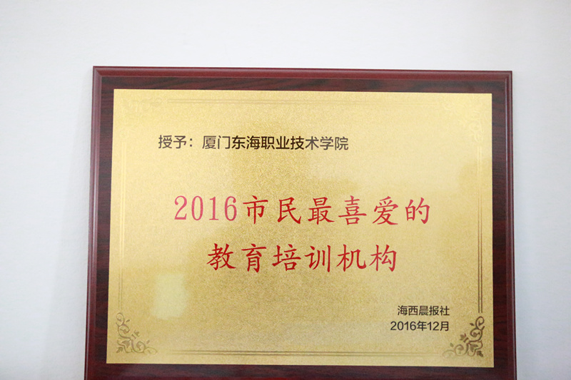 热烈庆祝我校在厦门市首届2016市民最喜爱的厦门职业院校评选中荣获“2016市民最喜爱的教育培训机构”。