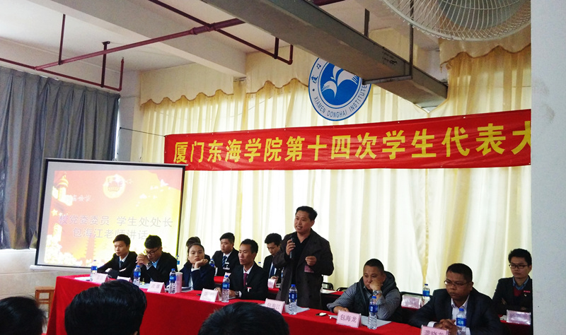 2016年12月24日,我校第十四次学生代表大会在校图书馆隆重举行。学校朱国辉校长、校党委黄平南书记、宋艳春副校长、学生处包海江处长、校党政办吕明利副主任、团委陈朝书记及各团委委员出席本次代表大会。本次大会101名学生代表来自学校四个学生组织与五个分院各班级的优秀代表。