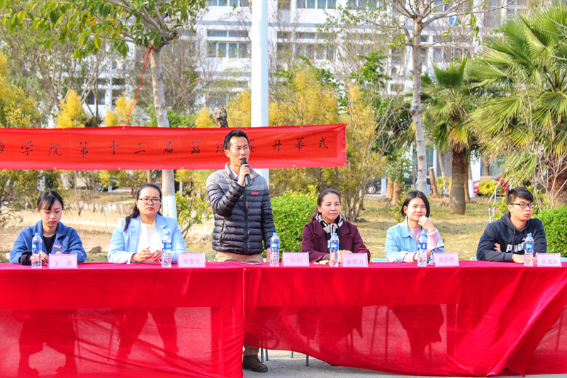 2月28日下午3点50分,在校篮球场举行第十三届校篮球联赛开幕仪式。校长助理兼校党委委员崔筱力老师、学生处副处长兼团委书记陈朝老师及团委委员陈胤钰、黄彩燕、李嘉欣及王蓓老师出席此次活动。