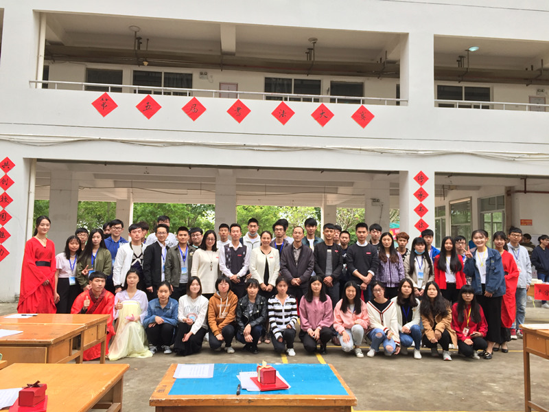 4月13日下午3时,由校团委主办、校社团联合会承办、墨斋书法协会协办的第五届校园书法大赛在中庭广场举行。团委陈朝书记、思政科负责人兼社联指导老师沈秋贤、教务处张斌老师及其他团委老师出席此次活动。