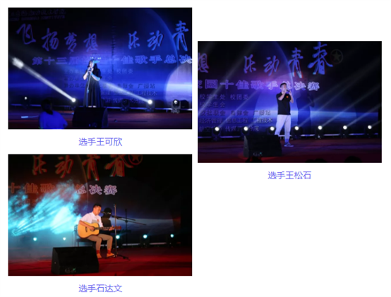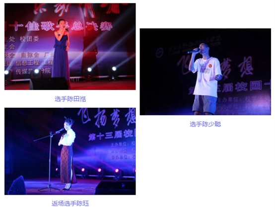 经过近一个月的层层选拔,共有12名选手登上了决赛的舞台。选手们怀揣着激情与梦想,用他们美妙的歌声感染着观众的心灵。在烟枪乐队演唱完歌曲《男孩》之后,比赛拉开序幕。开场第一位选手蔡沛烁凭借一首《千千阙歌》深得观众和评委的喜爱,紧接着王可欣同学安静的《Can’t take my eyes off you》、卢媛同学激昂的《追梦赤子心》、余洁琳同学张扬的《易燃易爆炸》、陈少聪深情的《爱如潮水》陆续亮相,民谣歌手石达文献上了一首触动人心的《一生所爱》,让观众犹如身临其境般步入歌曲中的唯美场景。随后街舞协会带来的街舞《Dancer party》更是引爆全场。