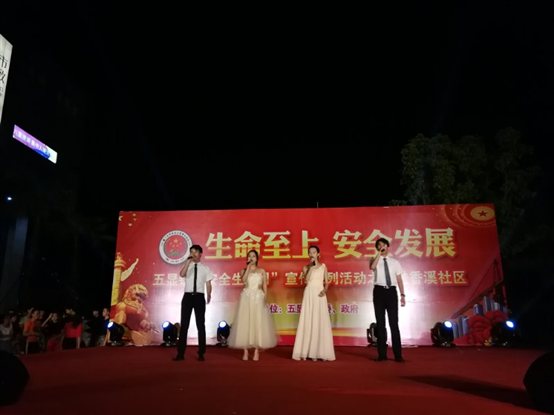 我校7个节目受邀参与三下乡的巡演中,有活力四射的舞蹈《加油AMIGO》《LOVE SONG》、有令人捧腹的小品《一路惊喜》、有英姿飒爽的擒敌拳表演、还有妩媚动人的双人拉丁舞和独唱《流花》,最后在一首齐唱《相亲相爱》中,晚会落下帷幕。此次活动我校50名青年志愿者井然有序地进行活动周边的交通疏导、现场秩序维护及环境清理、礼品及宣传册发放及晚会催场工作。同时我校近两百名学生干部与香溪社区的居民观看了此次晚会。