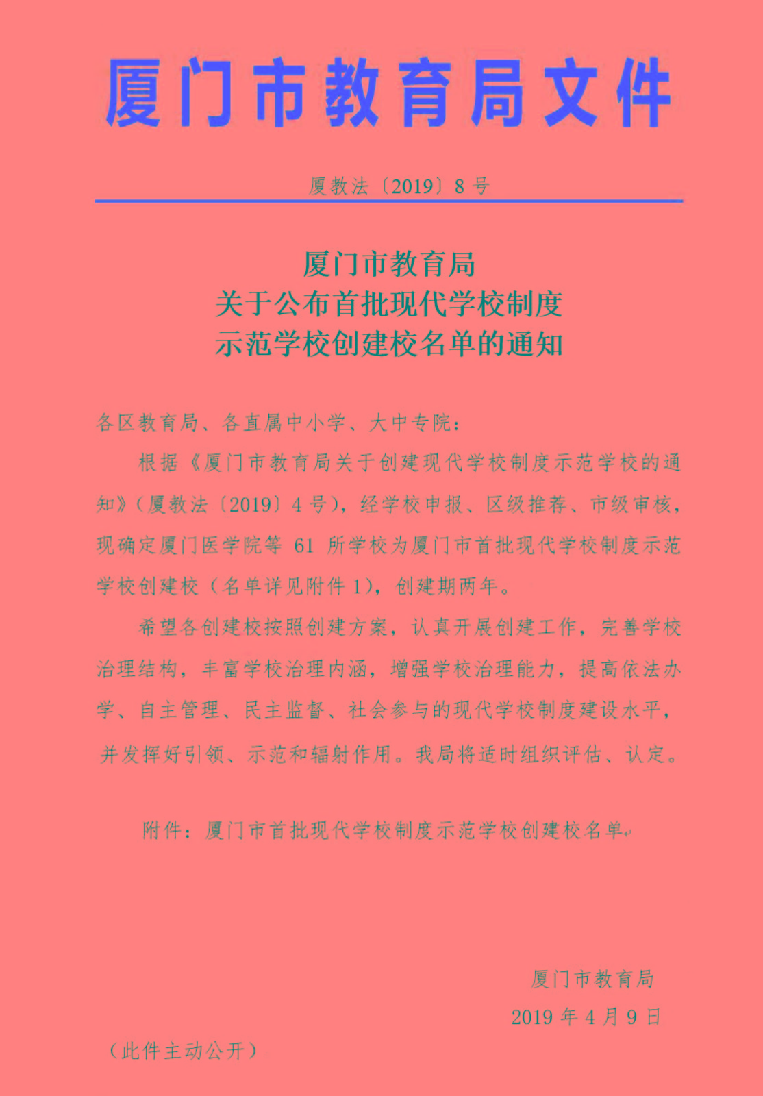 获评"厦门市首批现代学校制度示范学校创建校"