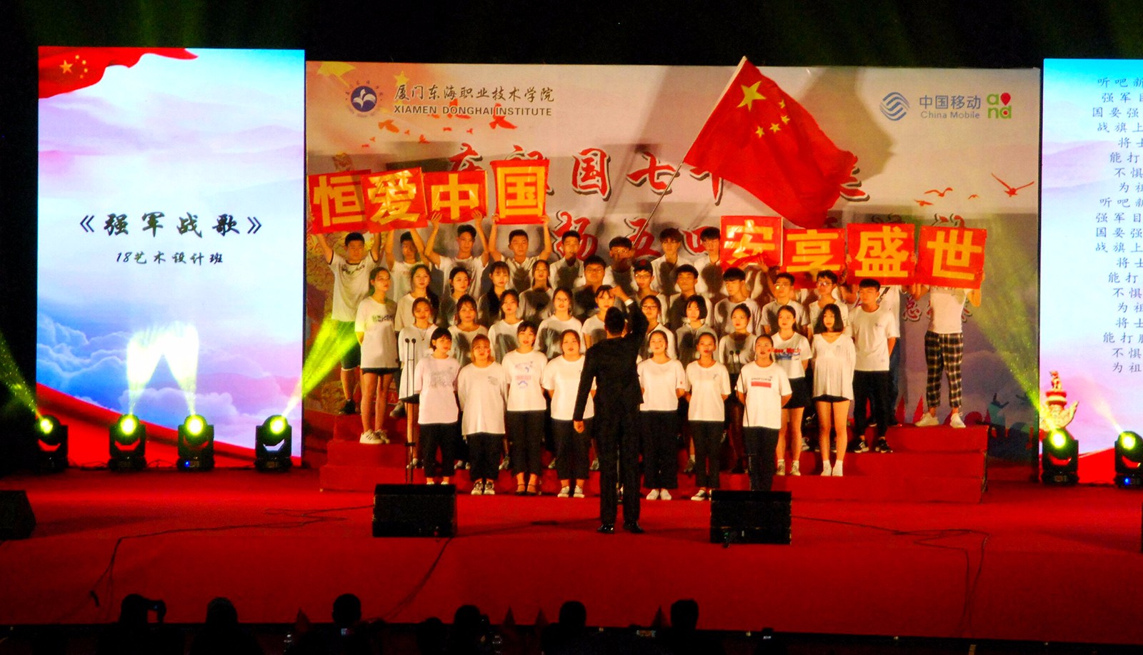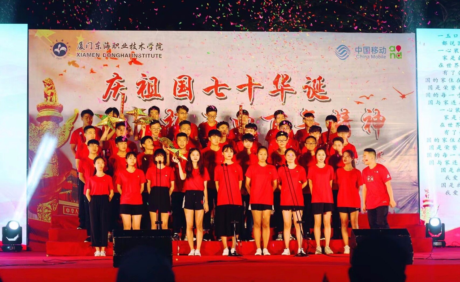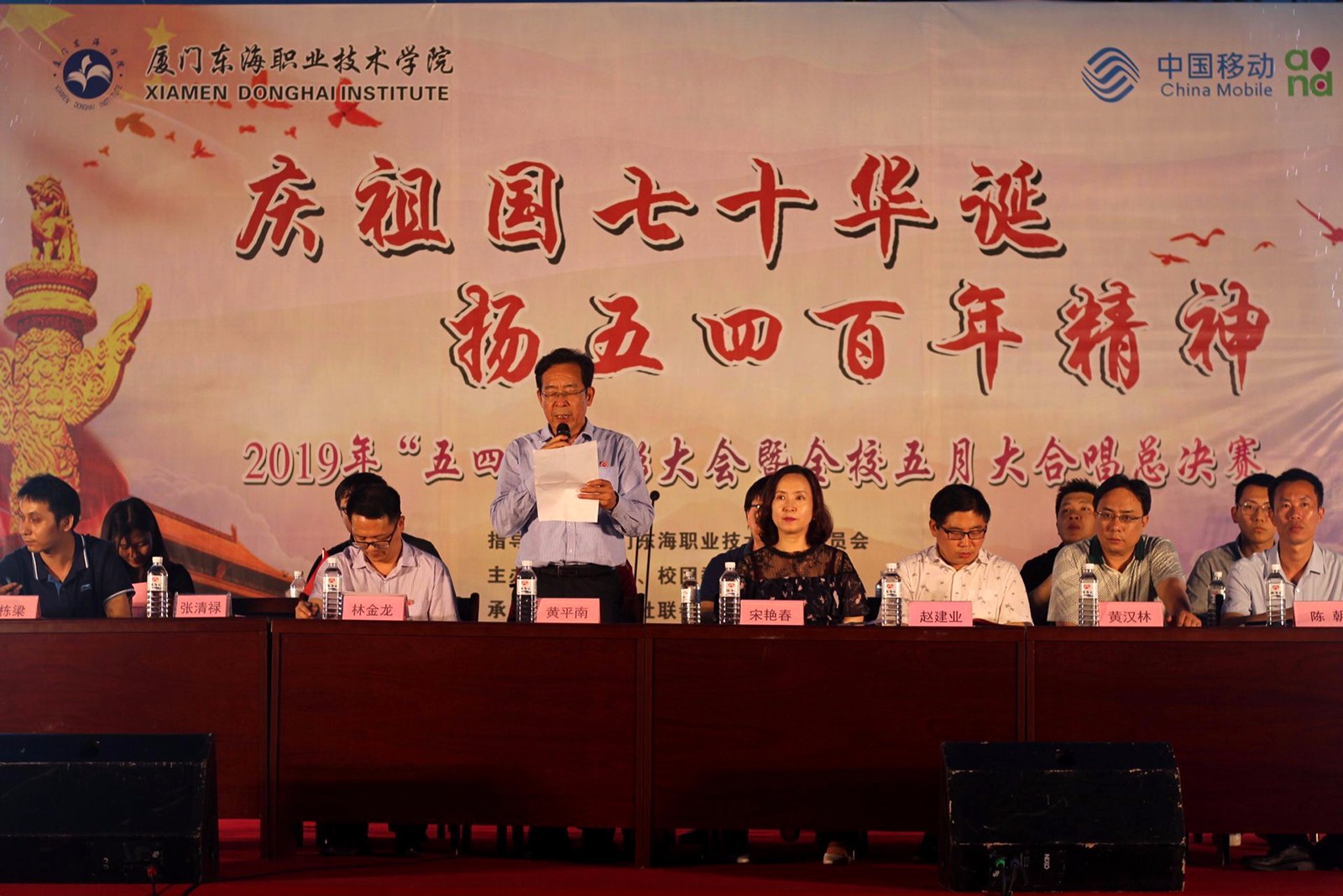 为庆祝祖国70华诞,弘扬五四百年精神, 5月15日晚,东海学院2019年五四表彰大会暨全校五月大合唱总决赛在中庭广场隆重举行。校党委黄平南书记,宋艳春副校长、林金龙副校长、以及各处室、各分院负责人莅临活动现场。活动由校党委指导,校学生处、校团委主办,四大体系及五个分院共同承办。