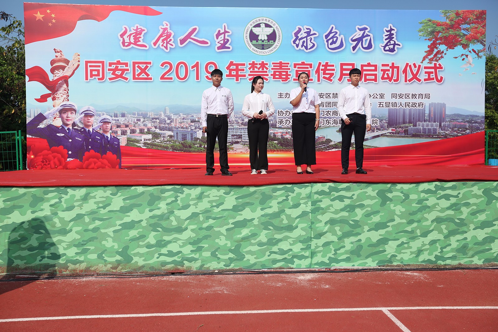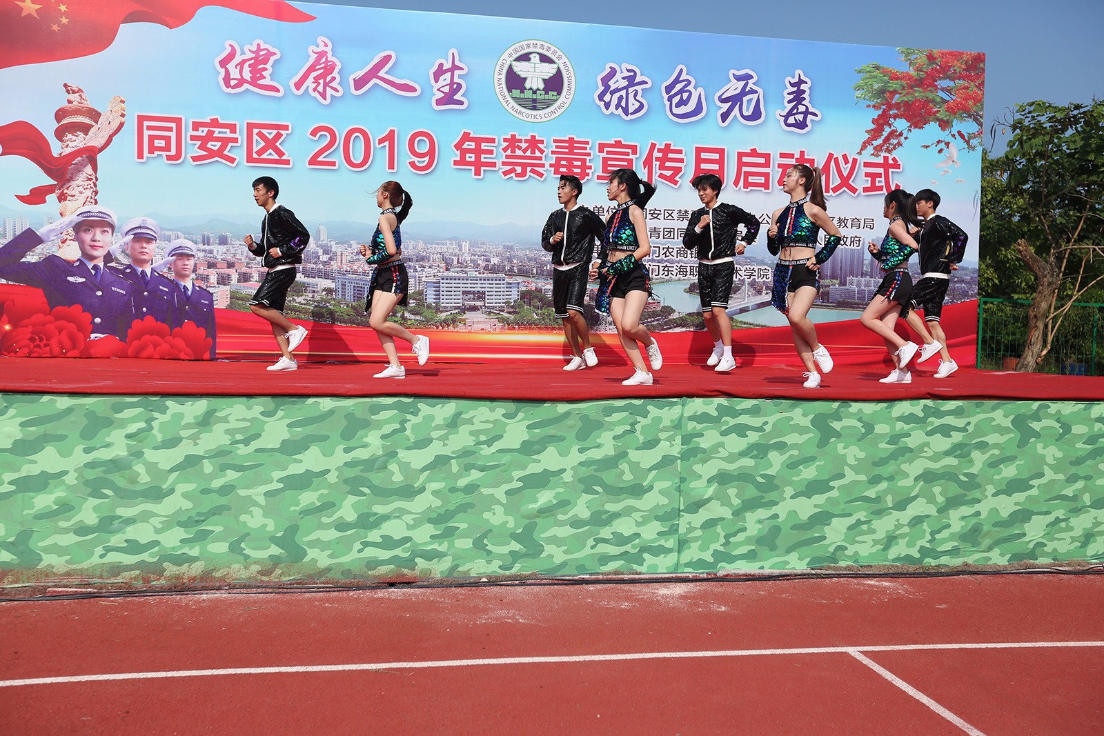 5月31日下午,由同安区禁毒委员会办公室、同安区教育局、共青团同安区委员会和五显镇政府联合主办,厦门东海职业技术学院承办的“健康人生·绿色无毒”——同安区2019年禁毒宣传月启动仪式在我校举行。厦门市禁毒办领导、同安区禁毒委员会各成员单位领导、同安区教育系统教师代表、五显镇部分干部、街道社区社工代表和我校师生共1300余人参加了启动仪式。