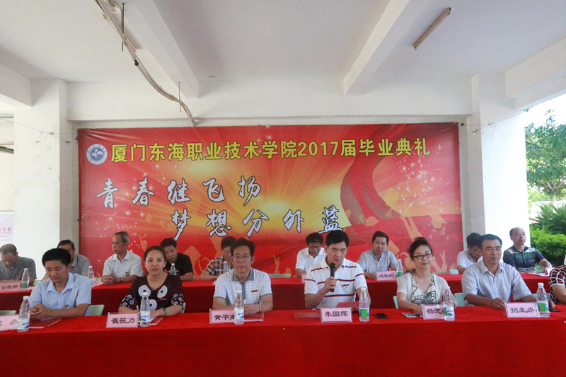 青春继飞扬,梦想分外蓝,转眼又是一年毕业季。6月7日下午,我校在教学楼中庭广场隆重举办2017届毕业生毕业典礼,欢送即将走出象牙塔,投身经济社会发展建设大军的同学们。校长朱国辉、校党委书记黄平南、副校长梁少华、副校长杨芝萍、副校长宋艳春、校长助理崔筱力,以及学校各行政部门、二级学院的负责人出席典礼,与广大毕业生共襄盛举。典礼由崔筱力校长助理主持。