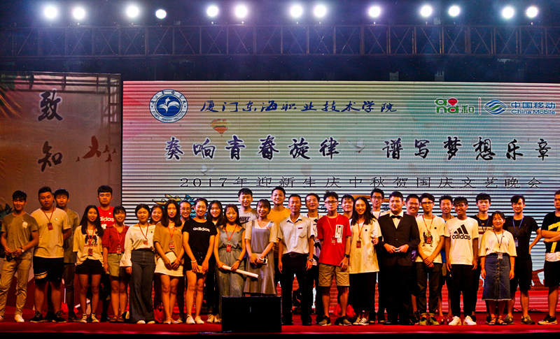 9月28日晚7时,我校以“奏响青春旋律·谱写梦想乐章”为主题的迎新文艺晚会在校足球场隆重举行。晚会由校学生处、团委主办,校学生管理四大体系及各二级分院承办。我校校长朱国辉、党委书记黄平南、副校长宋艳春、校长助理崔筱力、五显镇相关领导、新生军训团官兵以及赞助商中国移动福建公司同安分公司的领导出席晚会。师生齐聚一堂,用欢快的音符,节奏的律动,奏响了“欢度国庆,喜迎新生”的欢歌。