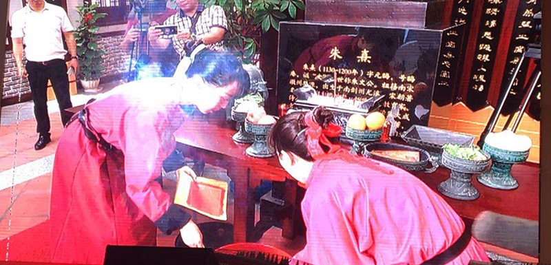 我校100多名师生受邀参与朱熹绍熙州县释奠仪和志愿服务,我校崔筱力校长助理受邀参加开幕式。作为本届朱子文化节的重头戏,此次祭祀活动人员基本由我校师生全程参与。依据的古礼称为绍熙州县释奠仪,源于朱熹所著的《绍熙州县释奠仪图》。而此次的祭祀活动还参酌了《政和五礼新仪》,并结合时代适当增删。这是全国首次复原朱熹所著的《绍熙州县释奠仪图》,8位海内外专家学者和朱氏宗亲代表担任献官,他们头戴冠帽,身着广袖长袍的汉服,带领我校52名同学通过开殿降神、初献、亚献、终献、饮福、赐胙、礼成等古礼,表达对先圣先贤的崇高敬意和永久纪念。随后52名学生与多位专家学者,包括同安文史专家颜立水等齐聚一堂,就《朱子家礼》与东亚世界展开了一场精彩的研讨。我校的其他50名志愿者参与到贵宾接待、引导及现场秩序的维护等方面。