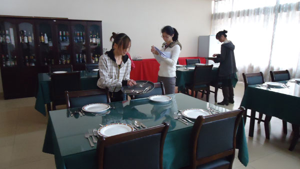 [旅游会展系]酒吧实训室学生练习西餐厅服务员