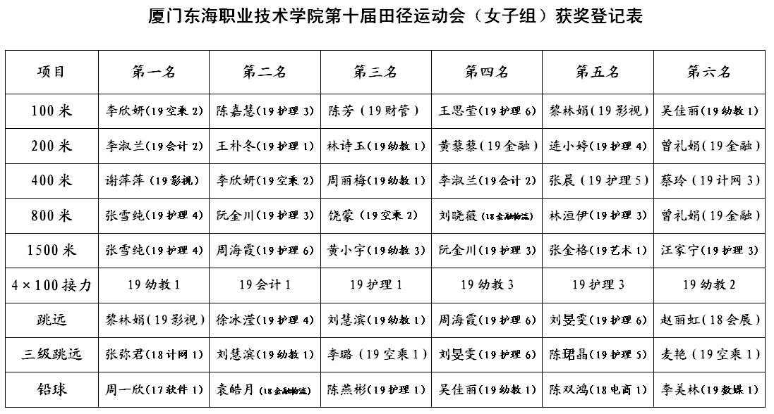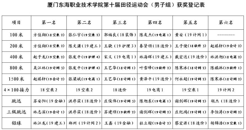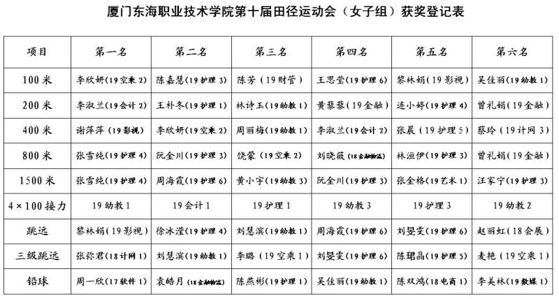 厦门东海职业技术学院第十届田径运动会
