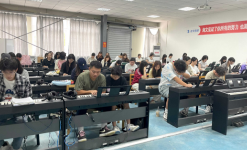 主要承担课程有:基础钢琴,幼儿歌曲即兴弹唱,即兴伴奏等。学生用电钢琴均采用卡西欧数码钢琴,该种类的钢琴不仅具有电子琴的多种音色、节奏与和弦编配,而且还具有钢琴的标准键盘与灵敏触感。系统利用多媒体计算机,主控系统、及对应软件将多部电子琴等键盘乐器连接起来,通过耳麦实现授课。