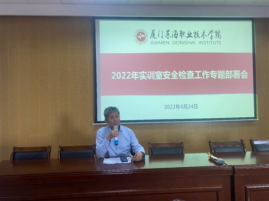 为深入贯彻落实党中央、国务院关于安全生产工作的决策部署和党的十九届六中全会精神,确保新冠肺炎疫情常态化防控下我校实践教学正常开展,保障广大师生人身安全和校园稳定,根据《福建省教育厅关于组织开展2022年学校实验室安全检查工作的通知》,4月24日上午,我校在思源楼报告厅召开2022年实训室安全检查工作专题部署会。学校郭士正副校长、林金龙副校长、教务处、保卫处、后勤处、信实中心负责人、各二级学院院长、专兼职实训室管理员参加了会议,会议由信息与实训管理中心副主任陈志新主持。
