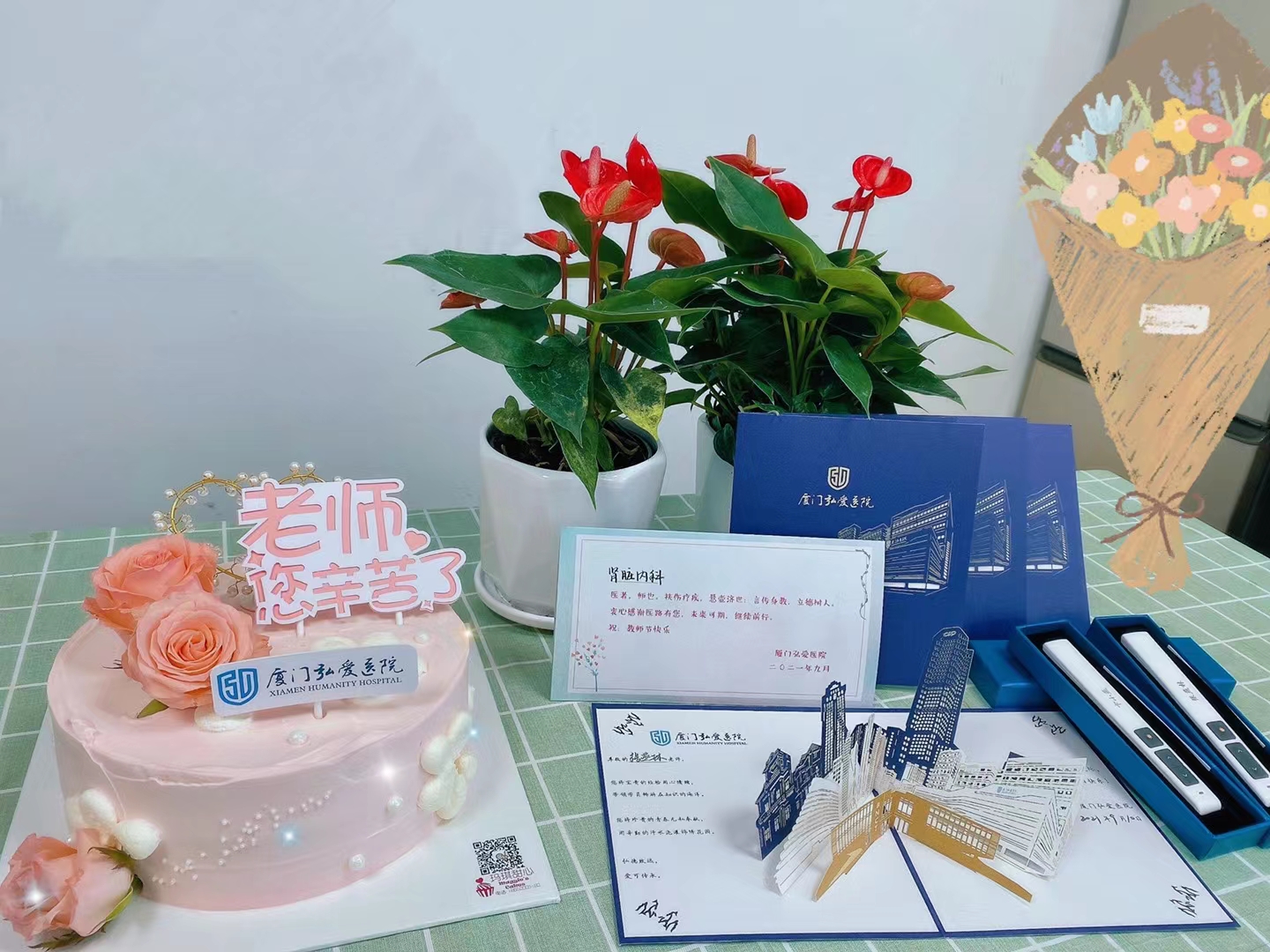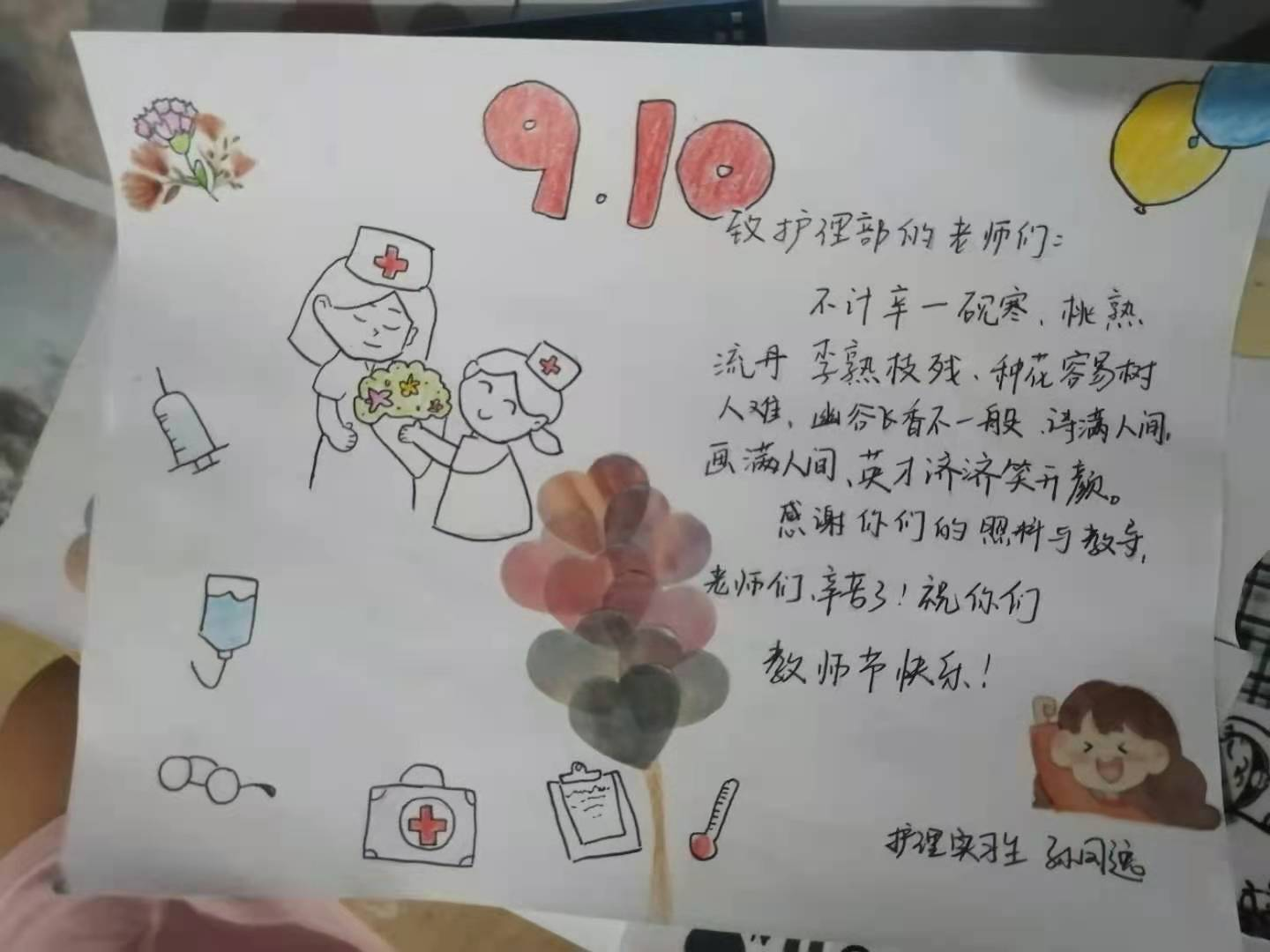 厦门东海职业技术学院健康产业学院2019级护理专业的同学们在此时也开展了“以传承,敬师恩”为主题的校园、医院联动的教师节塑魂感恩活动。2019级护理专业的同学们怀揣着感恩之心在此佳节,向实习医院的带教老师们纷纷表达了自己对于老师们的敬爱之情。
