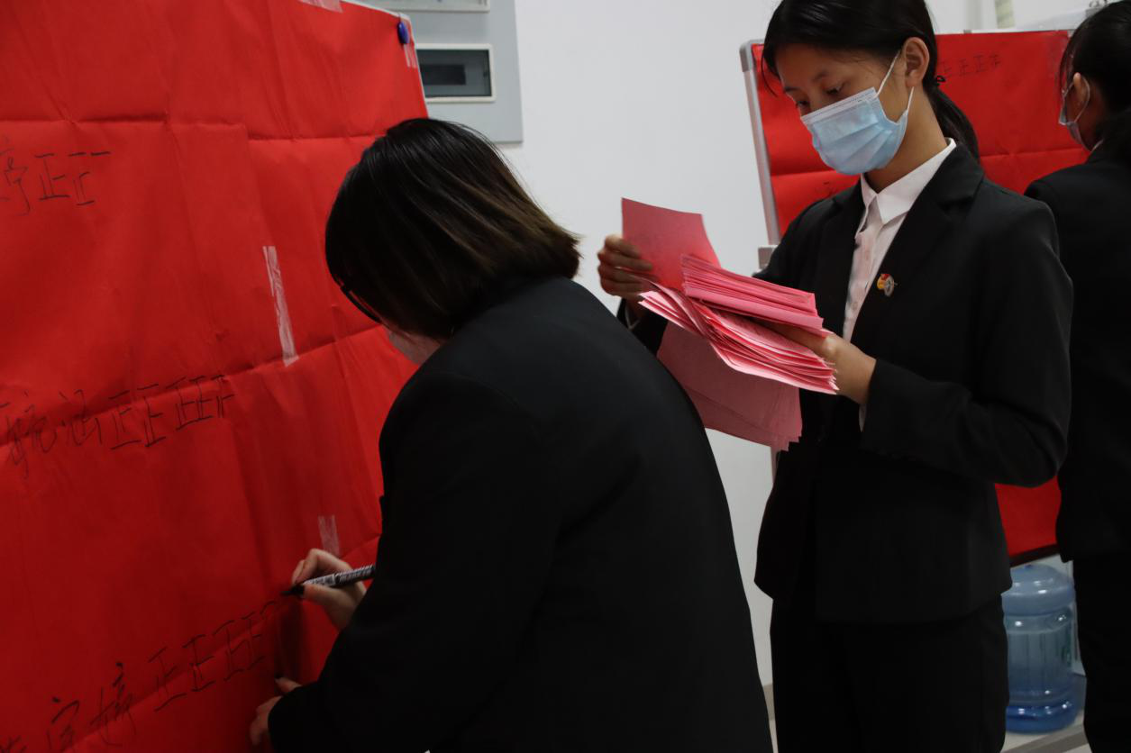 在总监票人的监督下,全体到场正式代表通过无记名投票、差额选举的方式选举产生了团总支委员。