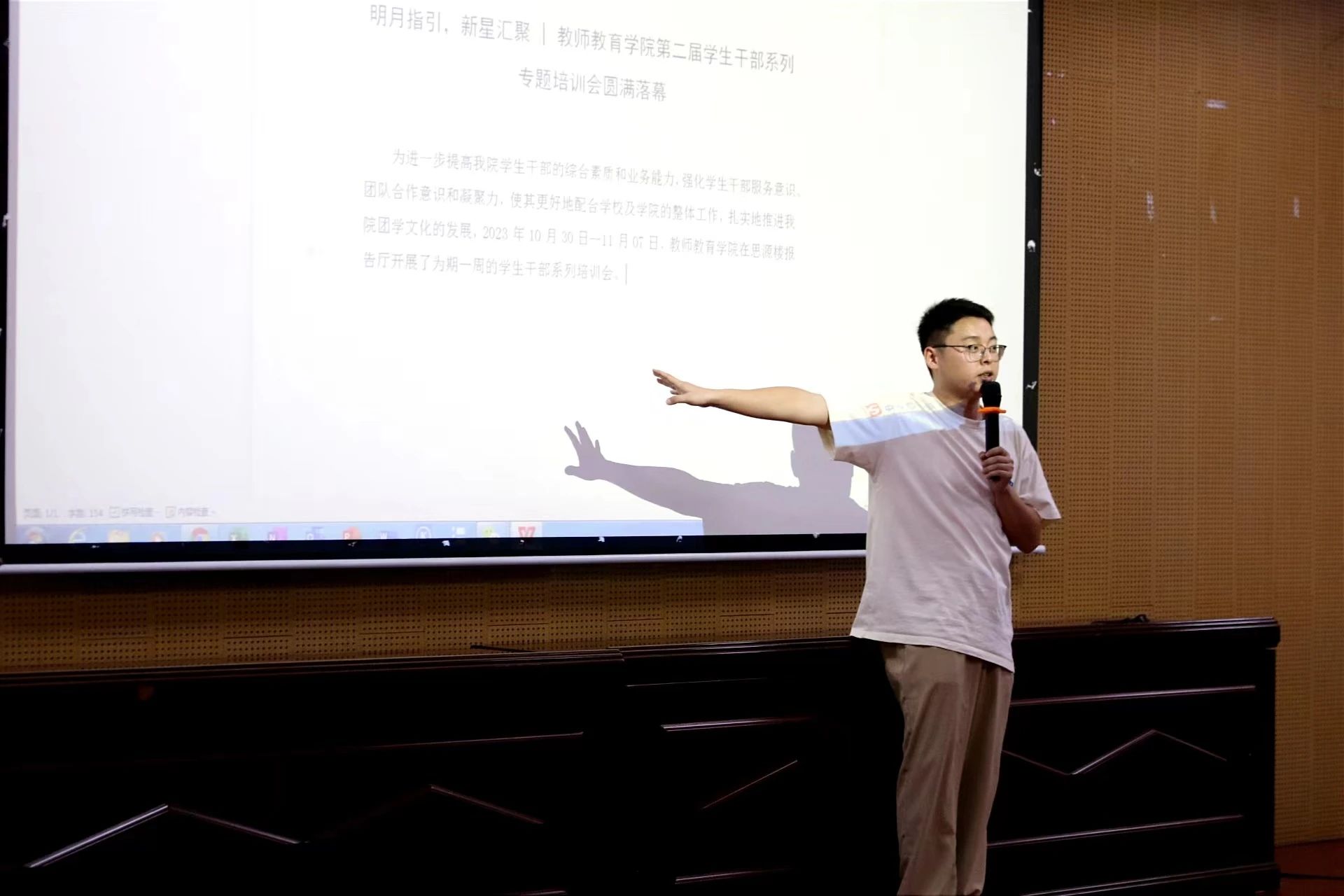 2023年10月30日-11月07日,教师教育学院在思源楼报告厅开展了为期一周的学生干部系列培训会。