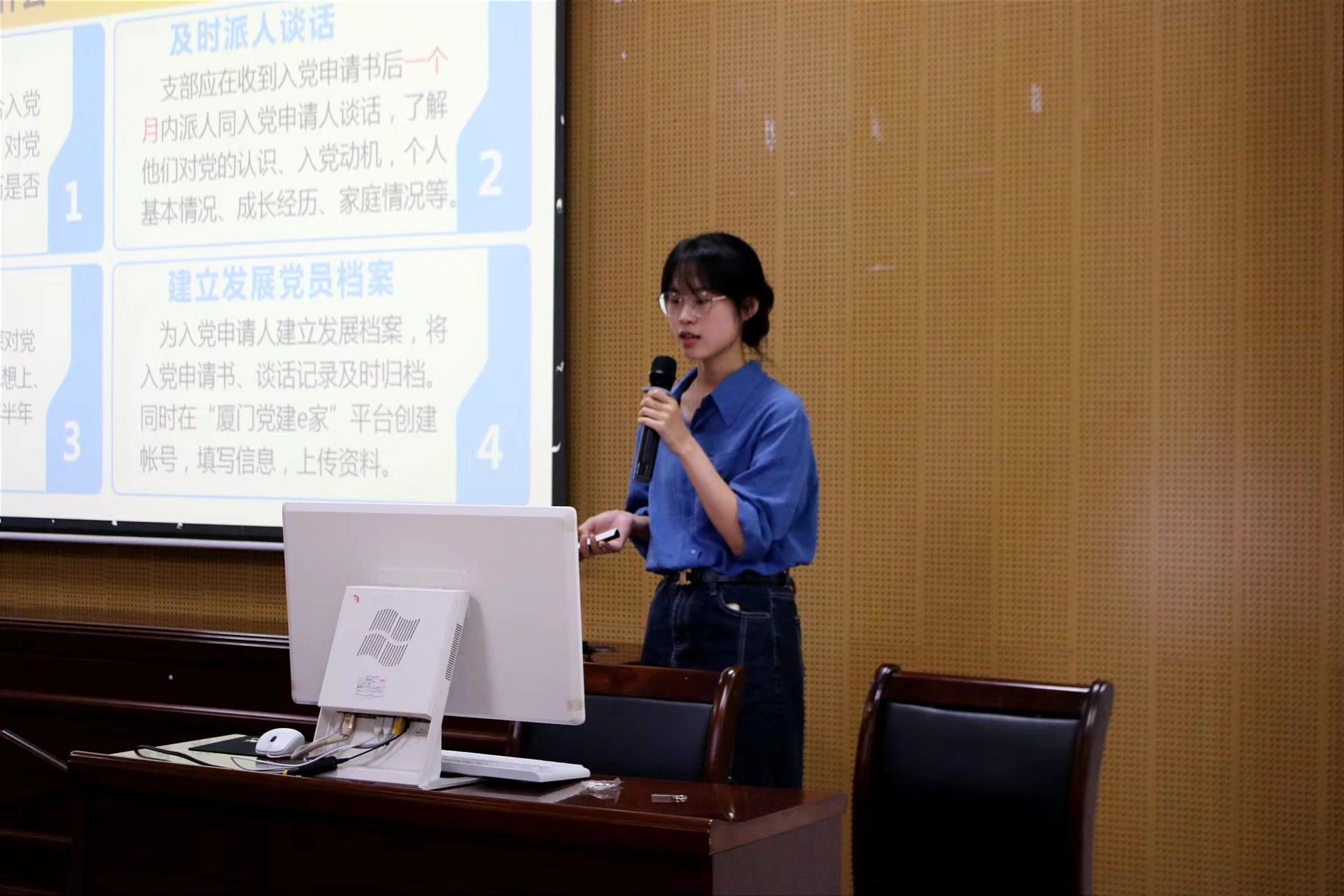 吴茹婷老师条理清晰、逻辑严谨的讲述了入党的流程和党组织对新时代青年的各项要求,并提出对青年一代的学生干部们的殷切希望,“端正自己的入党动机”、“入党是一辈子的事”等话语深深地印在了同学们的脑海里。