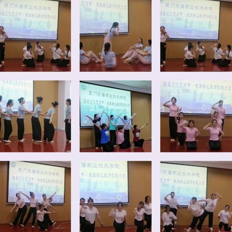 此次赛事采用特别的形式,即在赛前一小时进行抽取舞蹈曲目随即进行舞蹈编创,要求编排合乎曲目风格、富有童真童趣,充分考验其选手的创新能力与合作能力,也体现了此次赛事为培养高质量人才的目的。选手们舞姿翩翩亦或灵动飘逸亦活泼可爱,毫不怯场,彰显了学前教育学子的自信力展示了其深厚的专业功底。