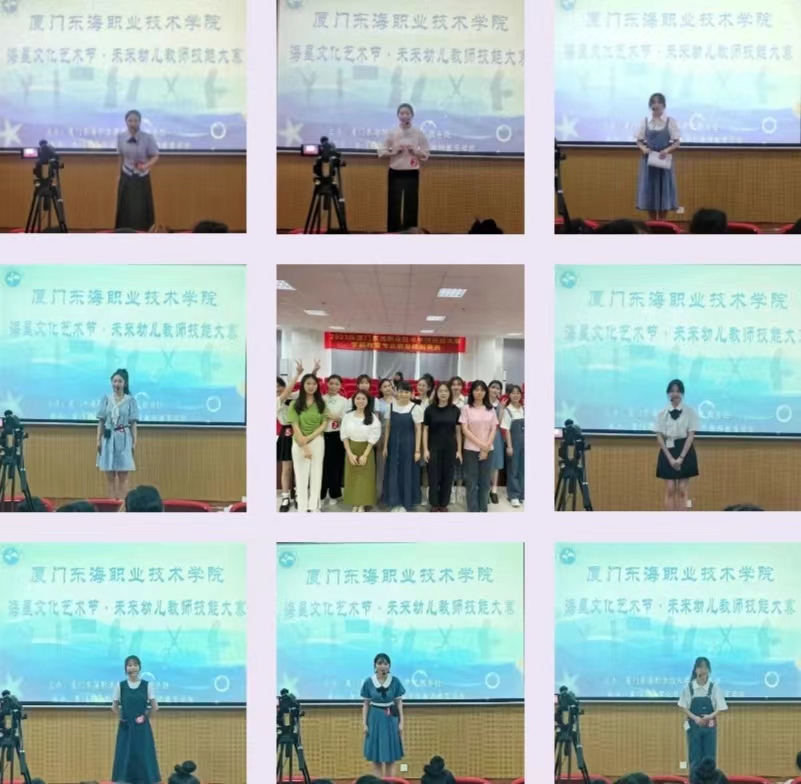 教师教育学院为响应上级的号召和指导,在2023年度职业教育活动周举办了学前教育专业教育技能赛项,其目的在于:落实《幼儿园教师专业标准(试行)》,检验学生适岗综合能力,促进人才培养质量的提升。学前教师的专业基本功不仅是能弹会唱,能说会跳,还要具有扎实的专业理论知识和职业道德素养,具备教育活动设计能力、观察能力、分析能力、信息化教学能力以及创新能力等。
