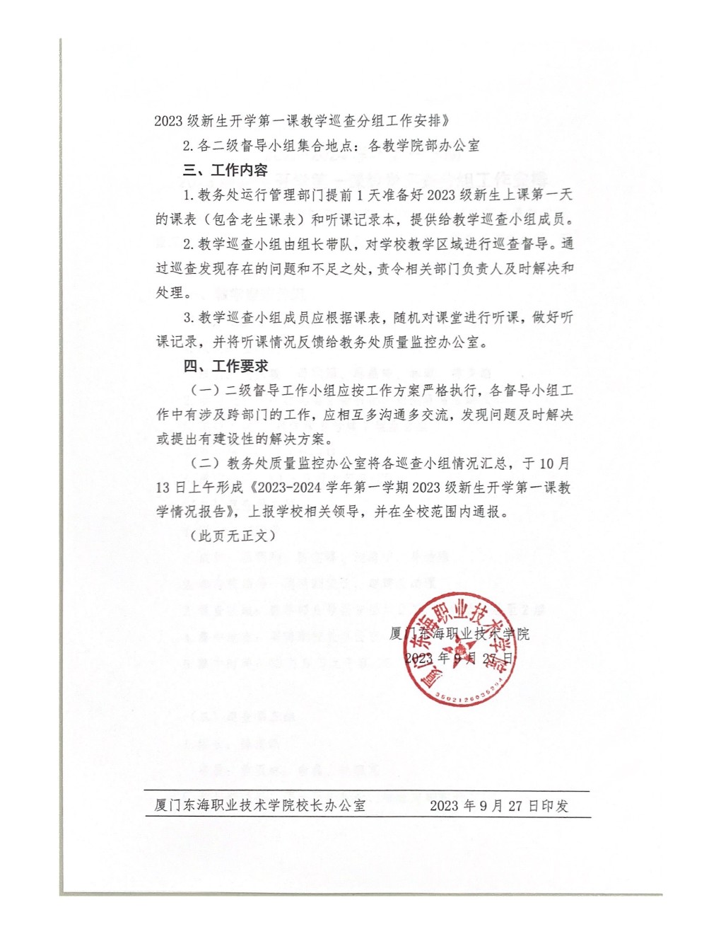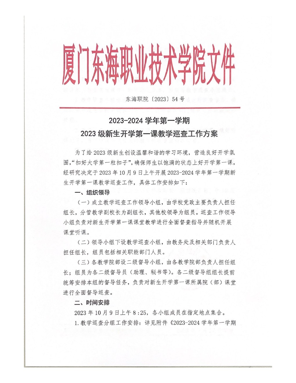 东海职院〔2023〕54号 2023-2024学年第一学期2023级新生开学第一课教学巡查工作方案.pdf