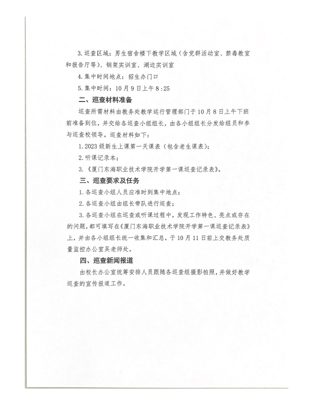 2023-2024学年第一学期2023级新生开学第一课教学巡查工作方案