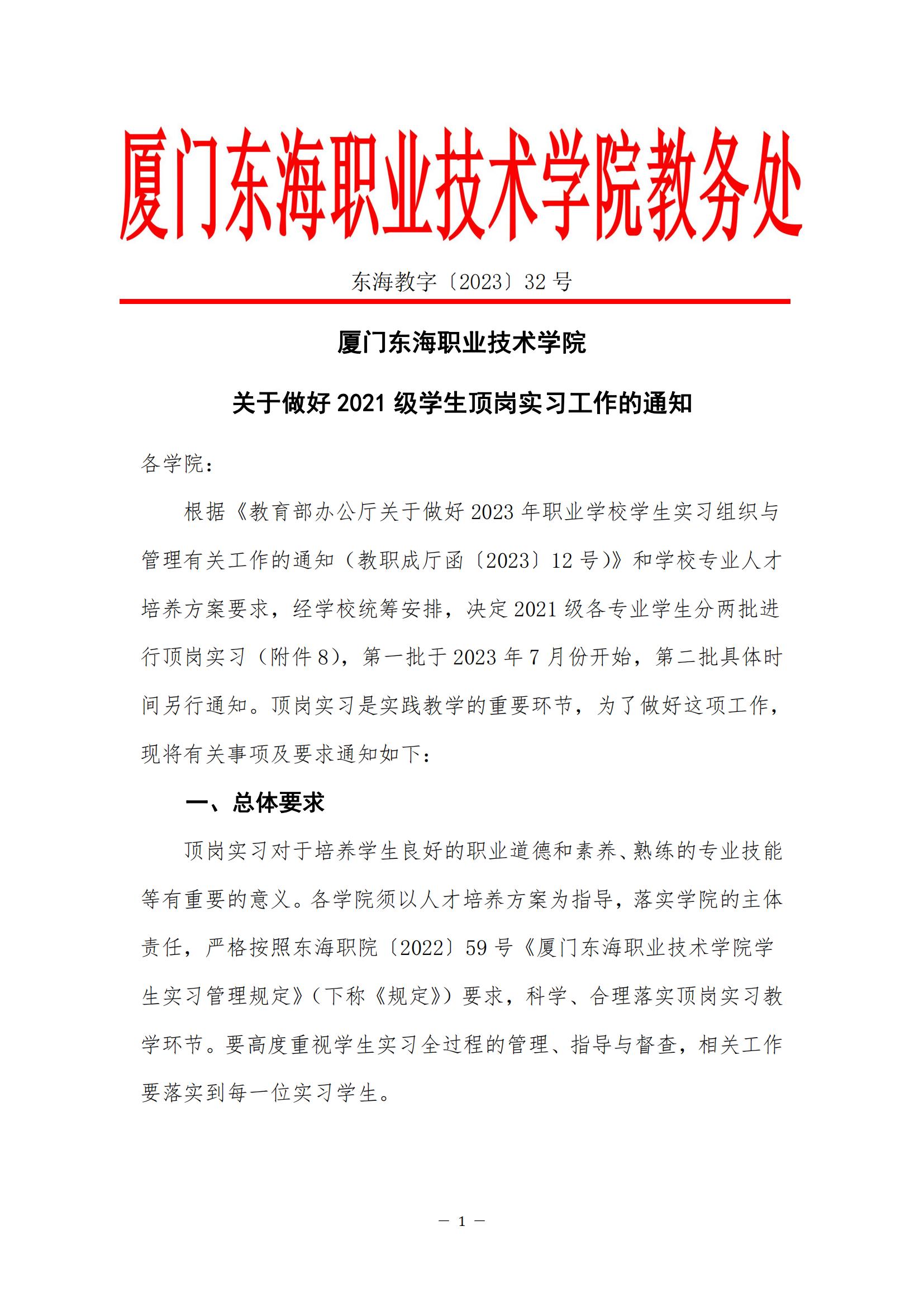 东海教字〔2023〕32号 关于做好2021级学生顶岗实习工作的通知