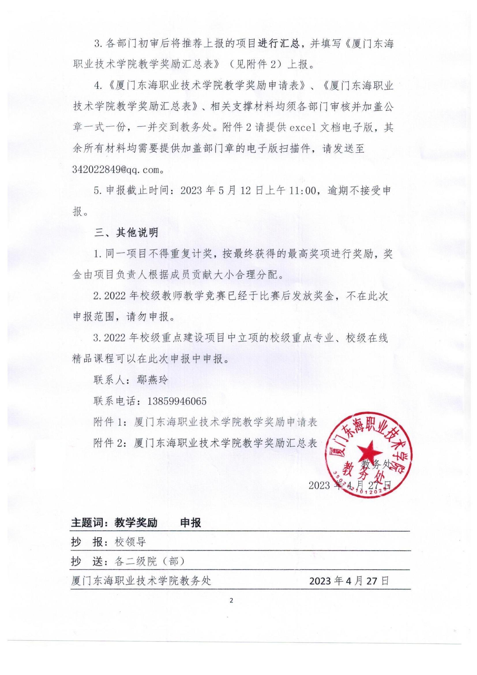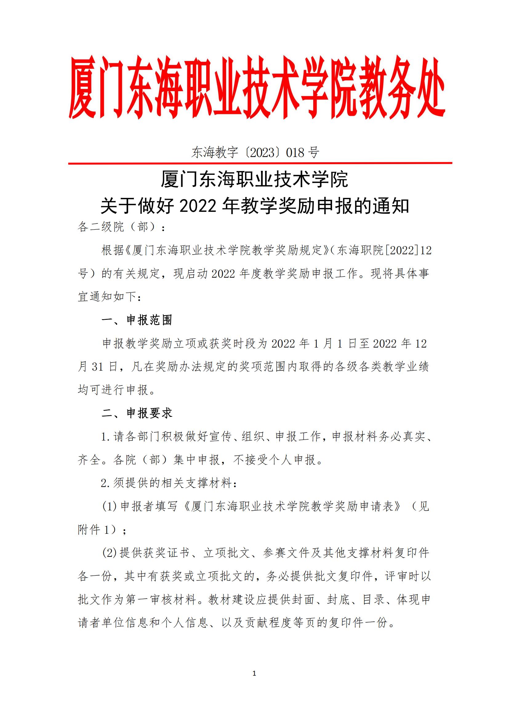 东海教字〔2023〕18号 关于做好2022年教学奖励申报的通知