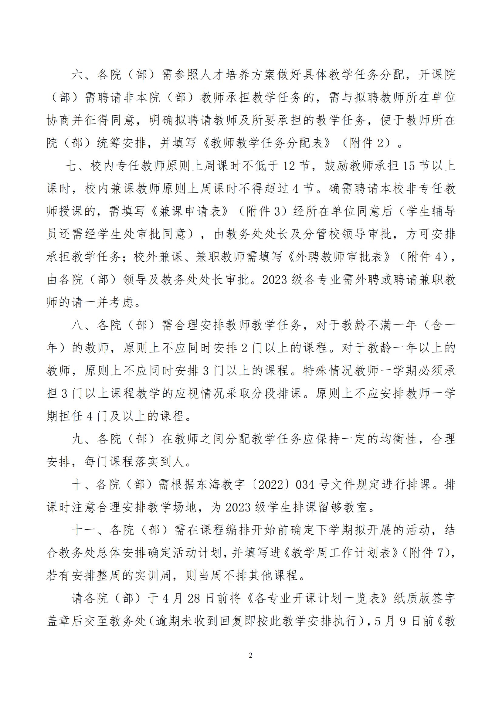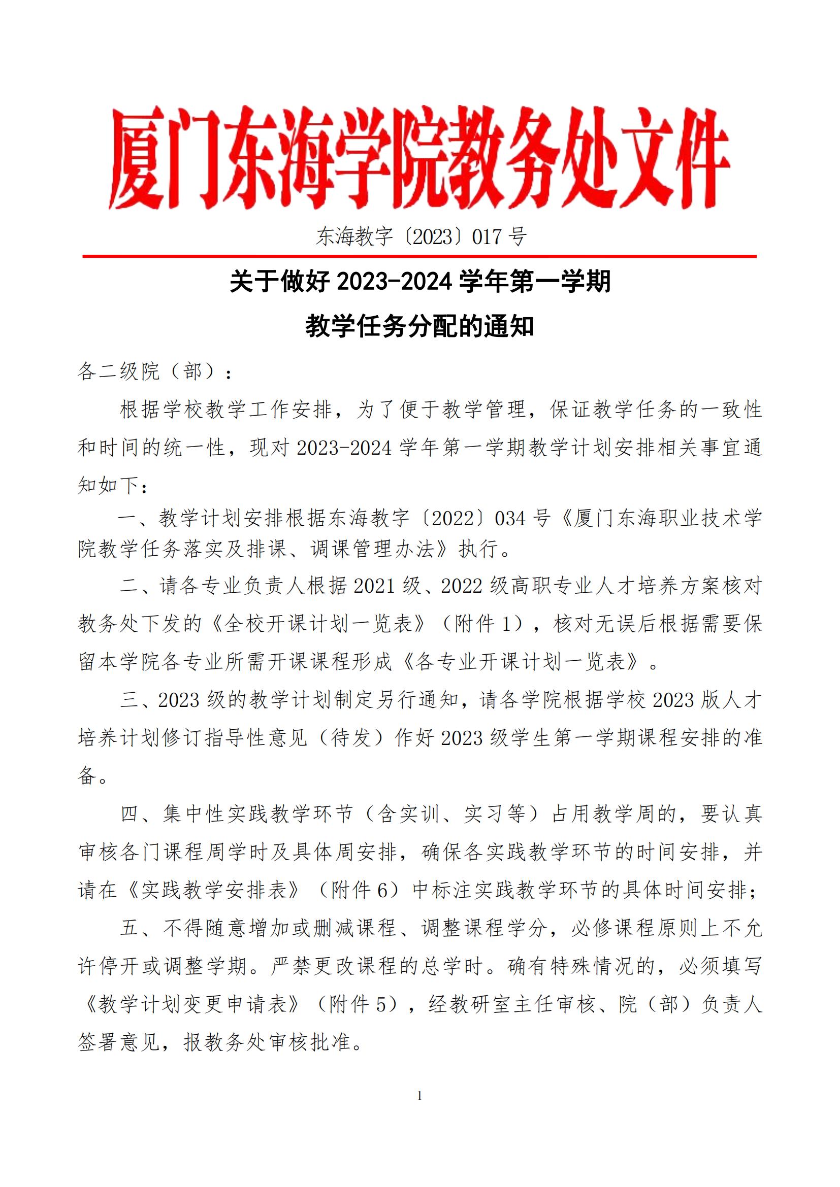 东海教字〔2023〕17号 关于做好2023-2024学年第一学期教学任务分配的通知