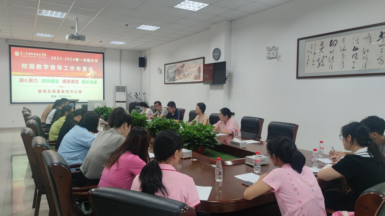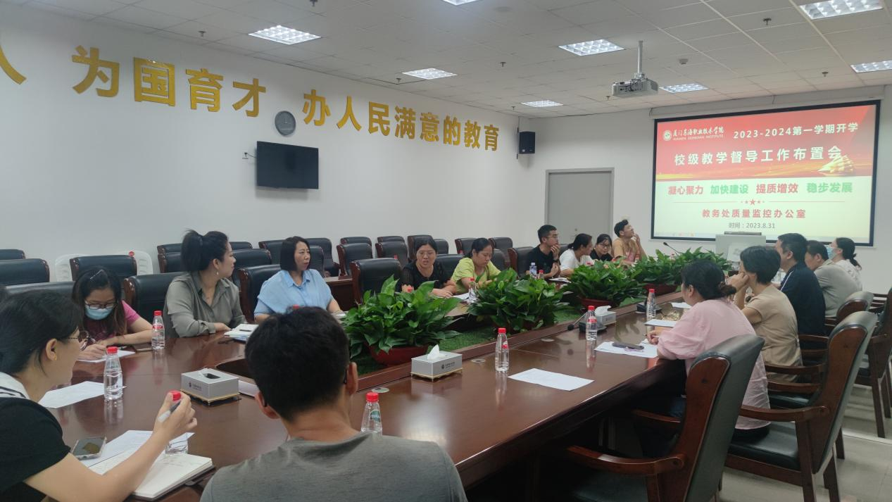 2023年8月31日下午,教务处在学校大会议室召开2023-2024学年第一学期开学教学督导工作布置会议,教务处张艳雯处长、邹胜龙副处长、鄢燕玲副处长、教务处质监办全体成员以及校级督导人员出席本次会议,会议由邹胜龙副处长主持。