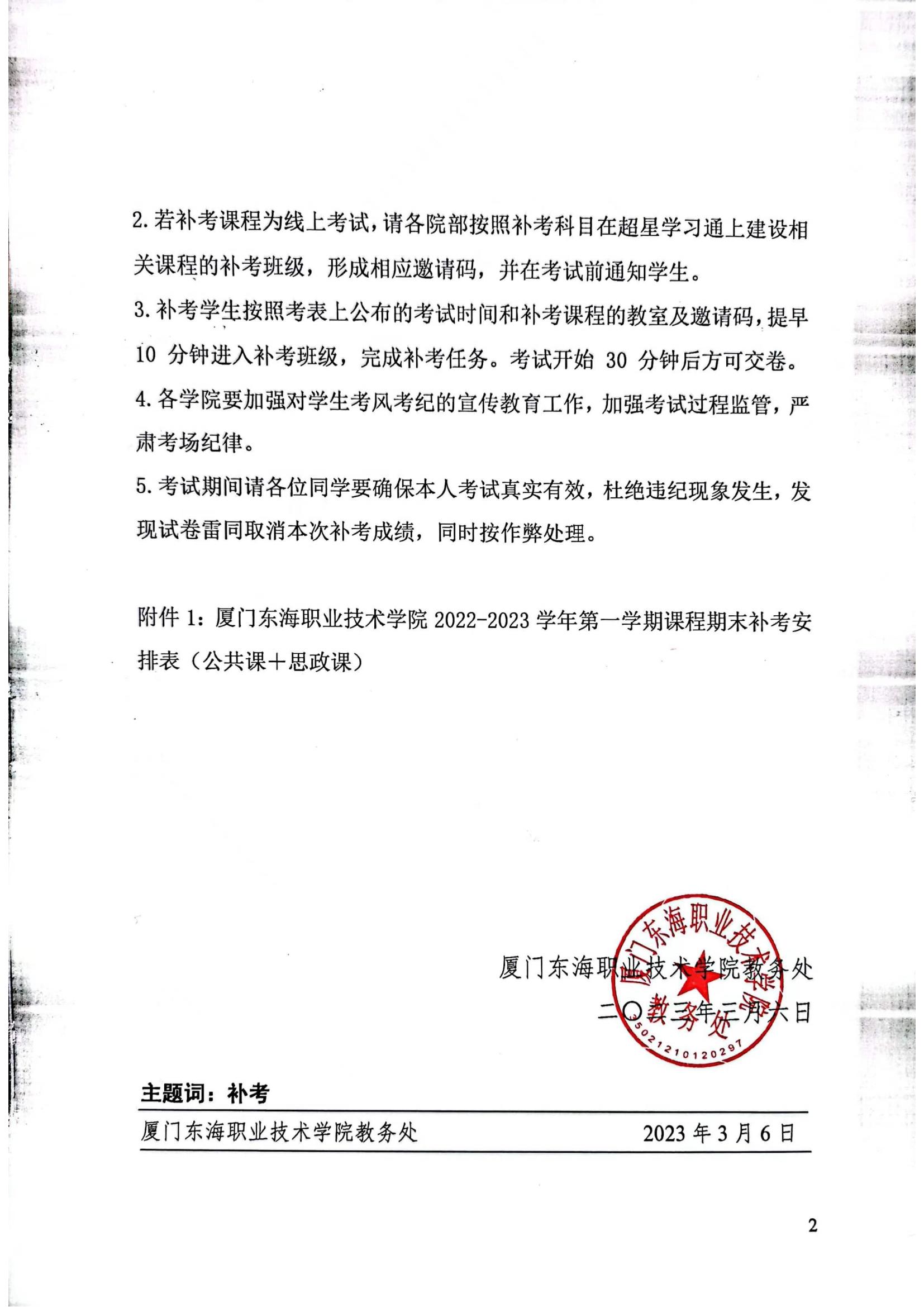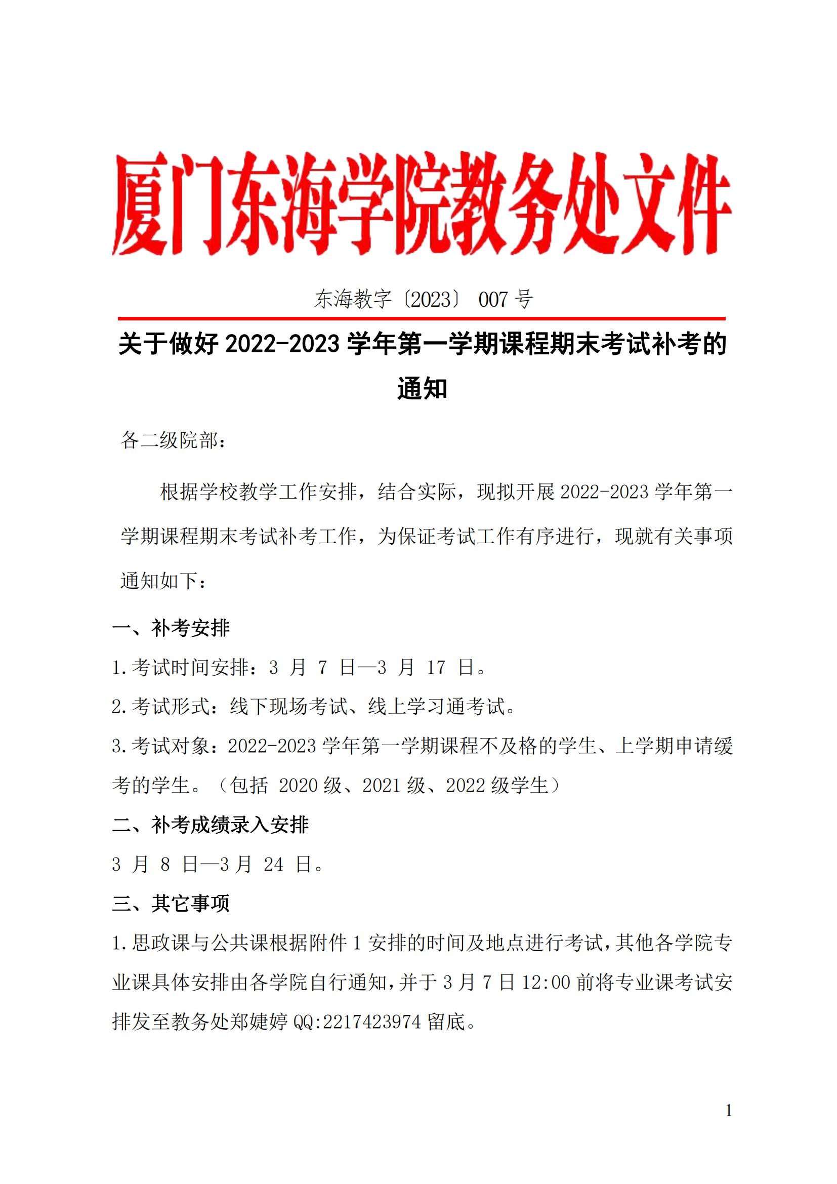 东海教字〔2023〕7号 关于做好2022-2023学年第一学期课程期末考试补考的通知