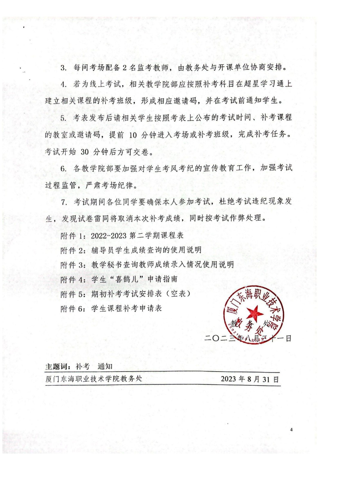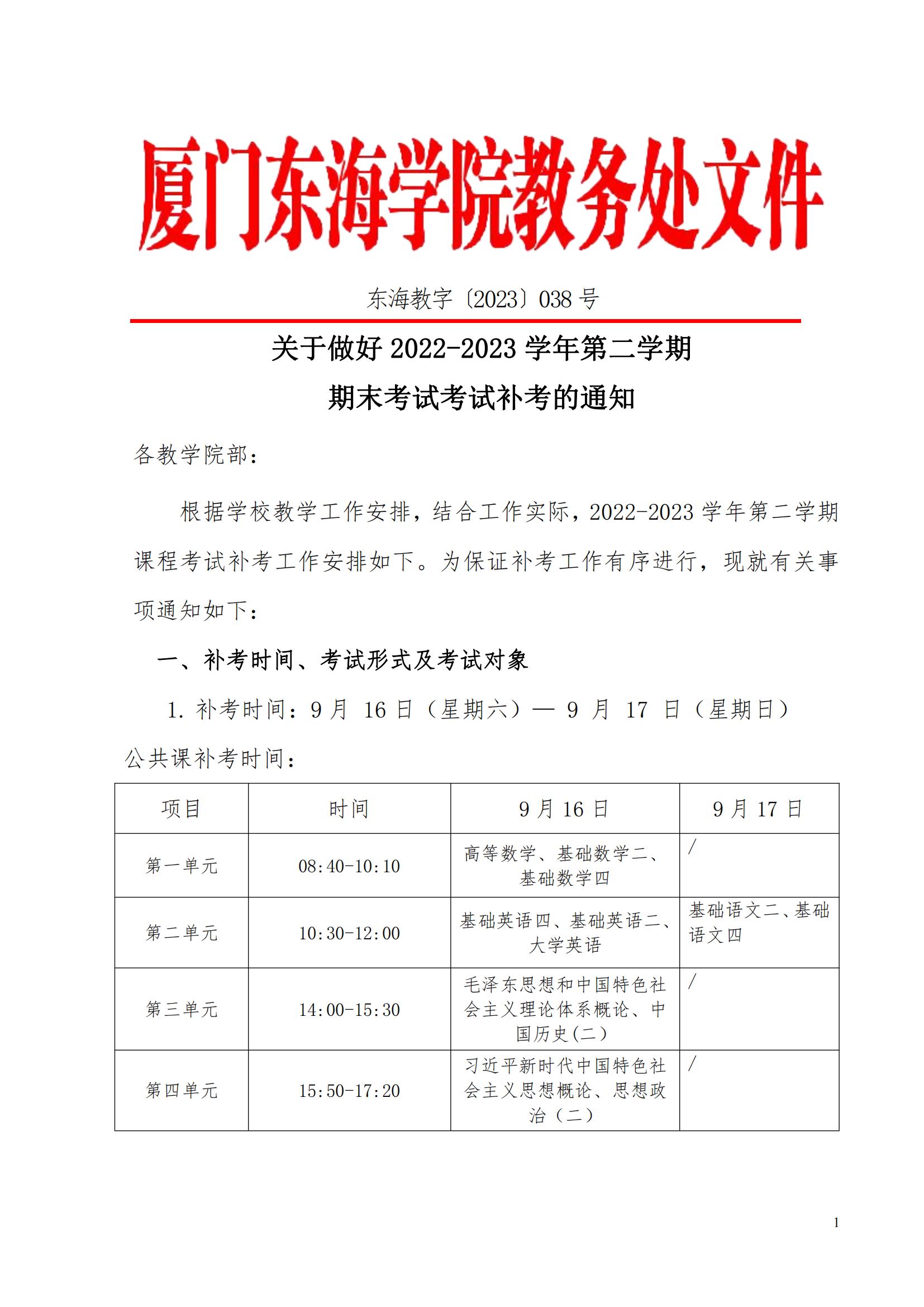 东海教字〔2023〕38号 关于做好2022-2023学年第二学期课程考试补考的通知