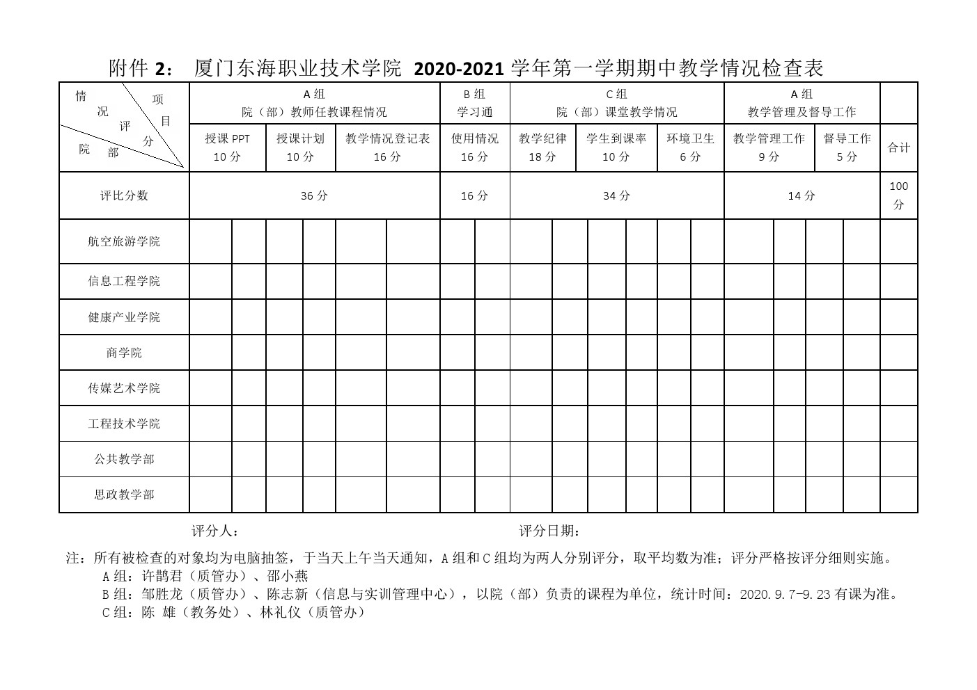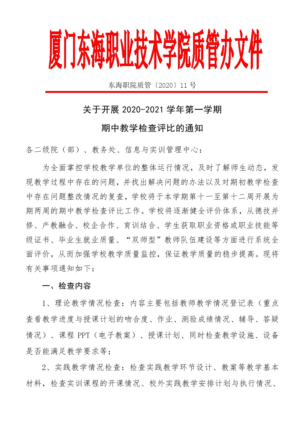 东海职院质管(2020)11号——开展2020-2021学年一学期期中教学检查评比的通知