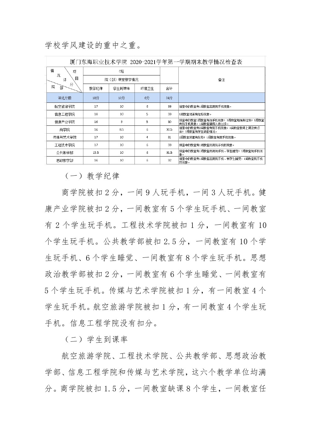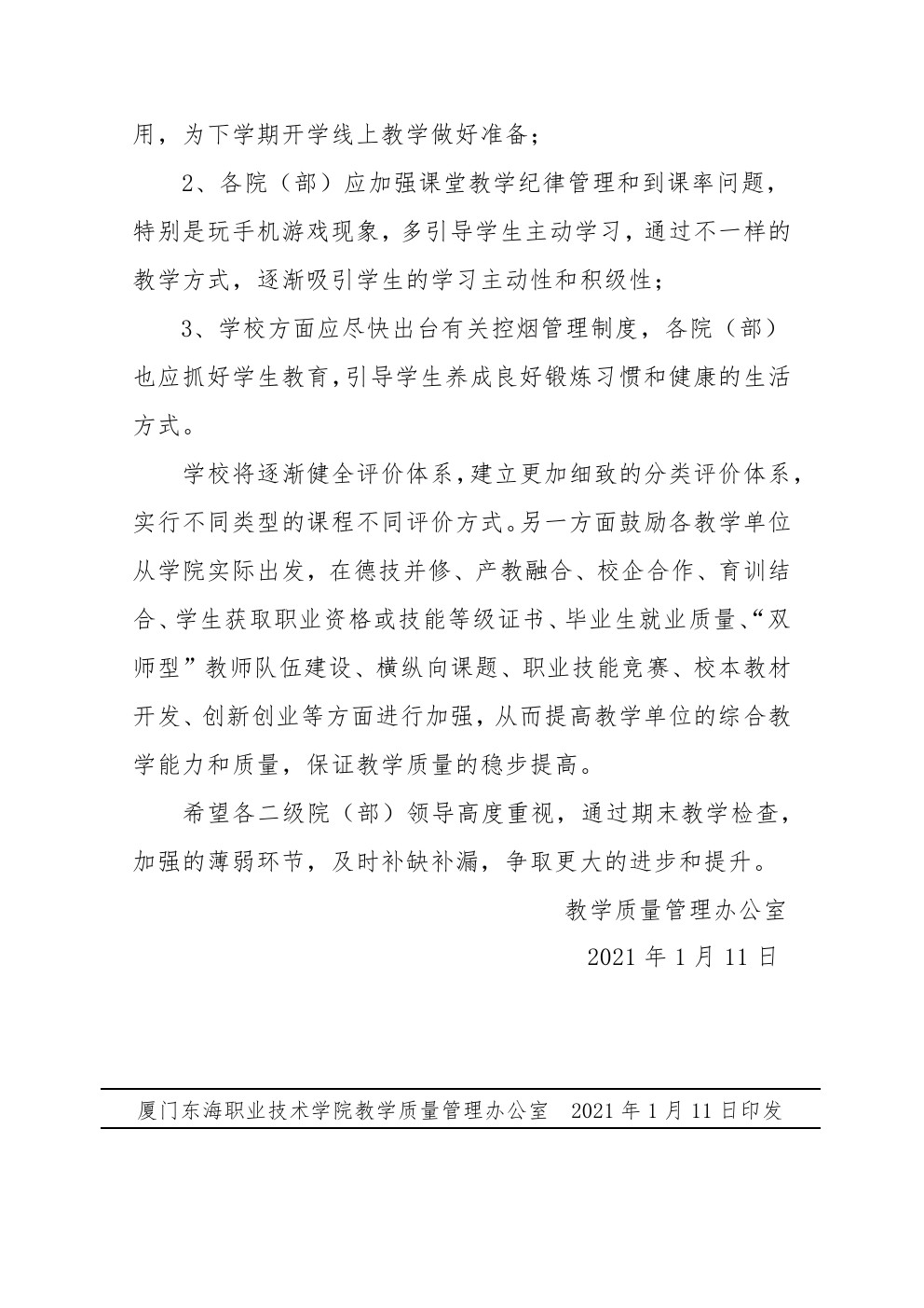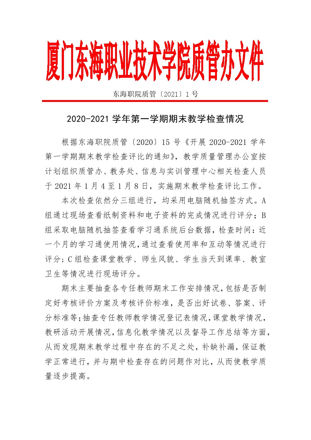 东海职院质管〔2021〕1号 2020-2021学年第一学期期末教学检查情况