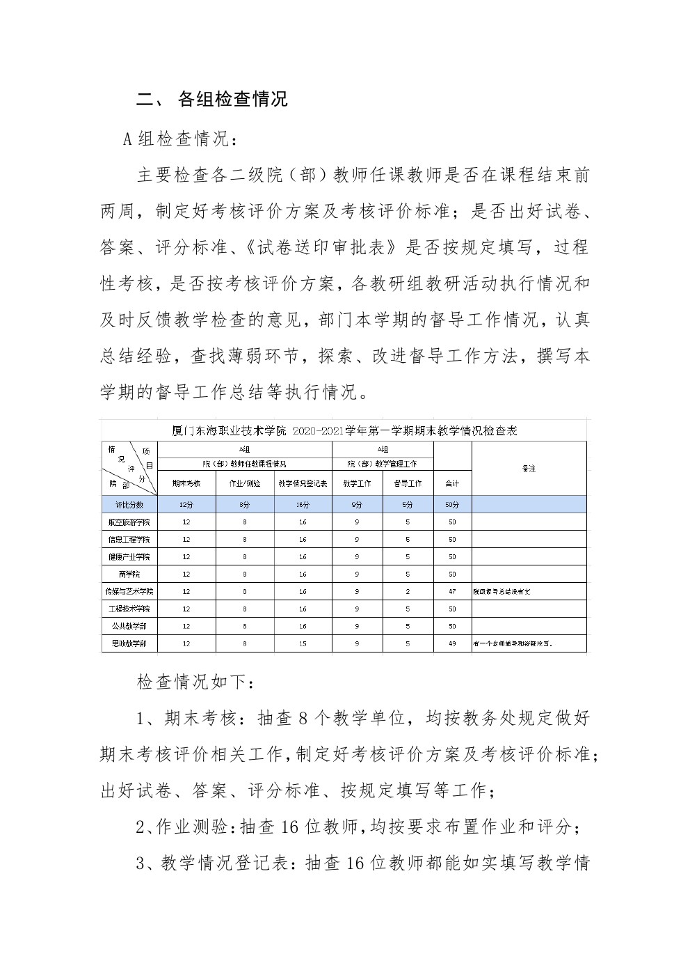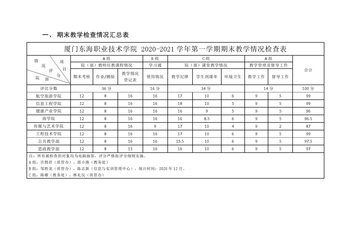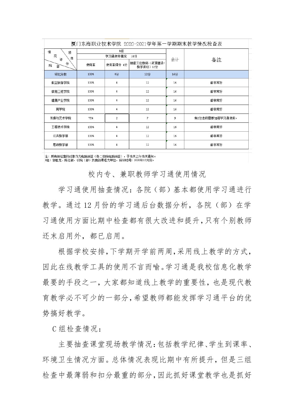 东海职院质管〔2021〕1号 2020-2021学年第一学期期末教学检查情况