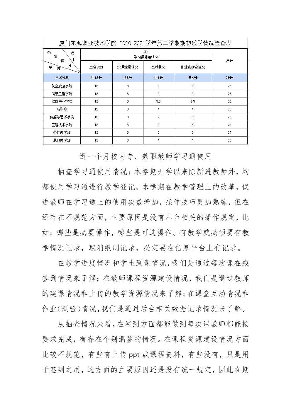东海职院质管〔2021〕6号 2020-2021学年第二学期期初教学检查情况