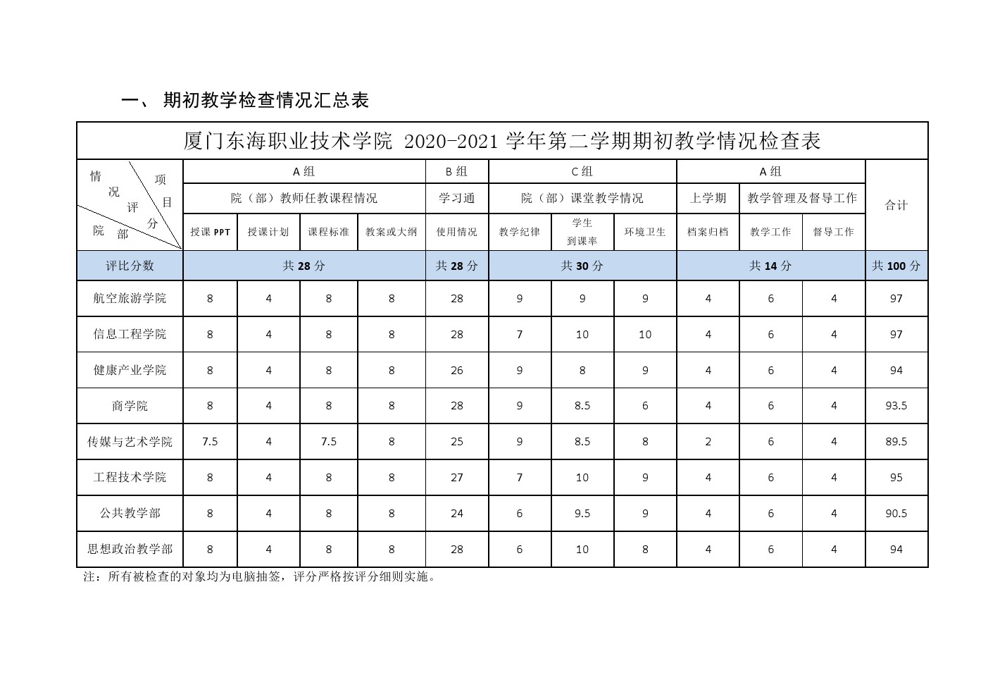 东海职院质管〔2021〕5号 开展2020-2021学年第二学期期初教学检查评比的通知